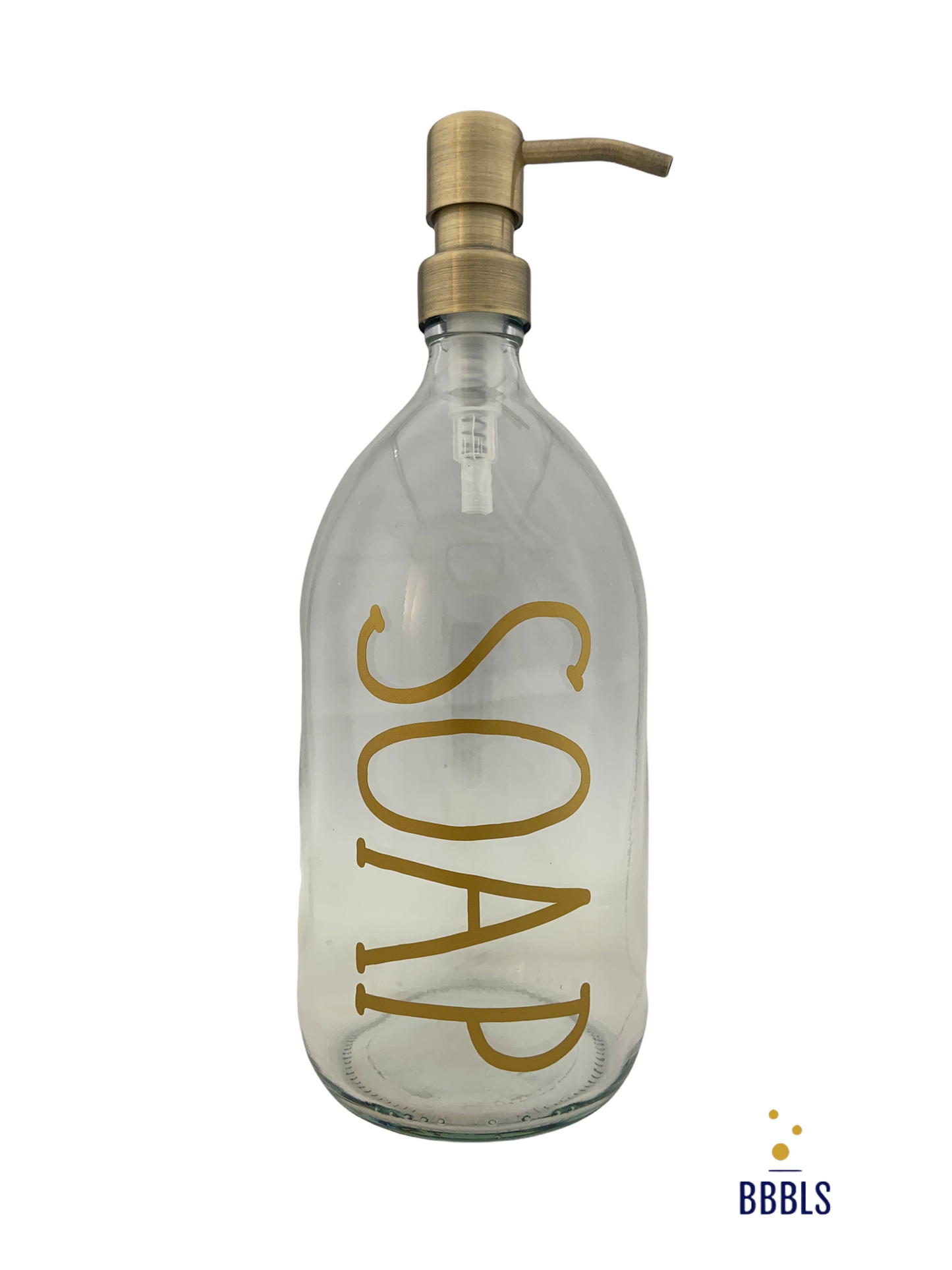 Soap 1000ml transparant glas dispenser met gouden RVS pomp